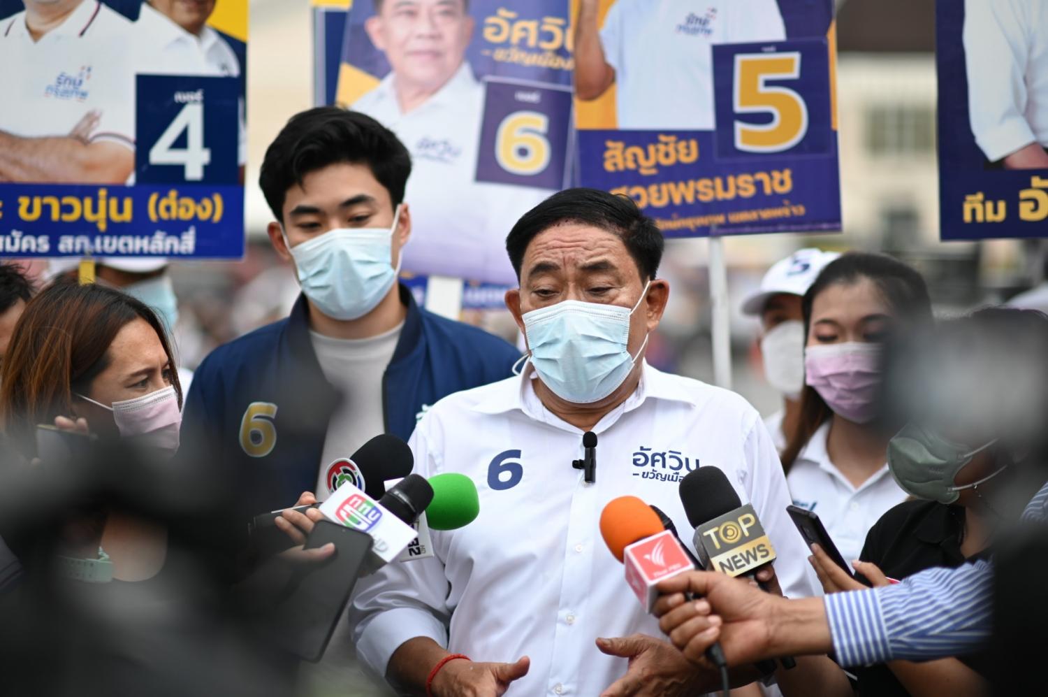 เมื่อค่ำวันที่ 16 พ.ค.พล.ต.อ.อัศวิน ขวัญเมือง ผู้สมัครผู้ว่าฯ กทม. หมายเลข 6 พร้อมผู้สมัคร ส.ก.กลุ่มรักษ์กรุงเทพ โซนกรุงเทพใต้ ตบเท้าขึ้นเวทีปราศรัย บริเวณสถานีบริการน้ำมัน PTT Station พระราม 2 เขตบางขุนเทียน โดยเริ่มจากผู้สมัคร ส.ก.เขตต่างๆ ผลัดกันขึ้นเวทีพูดคุยกับพี่น้องประชาชนที่มาให้กำลังใจและร่วมฟังการปราศรัยกว่า 1 พันคน
