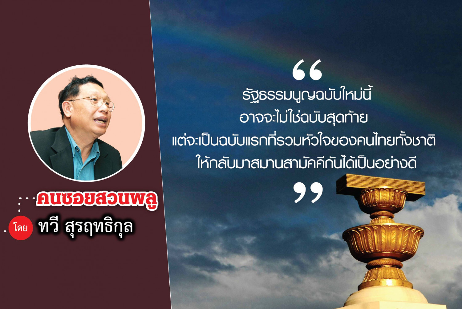 รัฐธรรมนูญฉบับใหม่นี้อาจจะไม่ใช่ฉบับสุดท้าย แต่จะเป็นฉบับแรกที่รวมหัวใจของคนไทยทั้งชาติ ให้กลับมาสมานสามัคคีกันได้เป็นอย่างดี อันเป็นผลได้ที่สุดยอดยิ่งกว่ารัฐธรรมนูญใดๆ นั้นเสียอีก