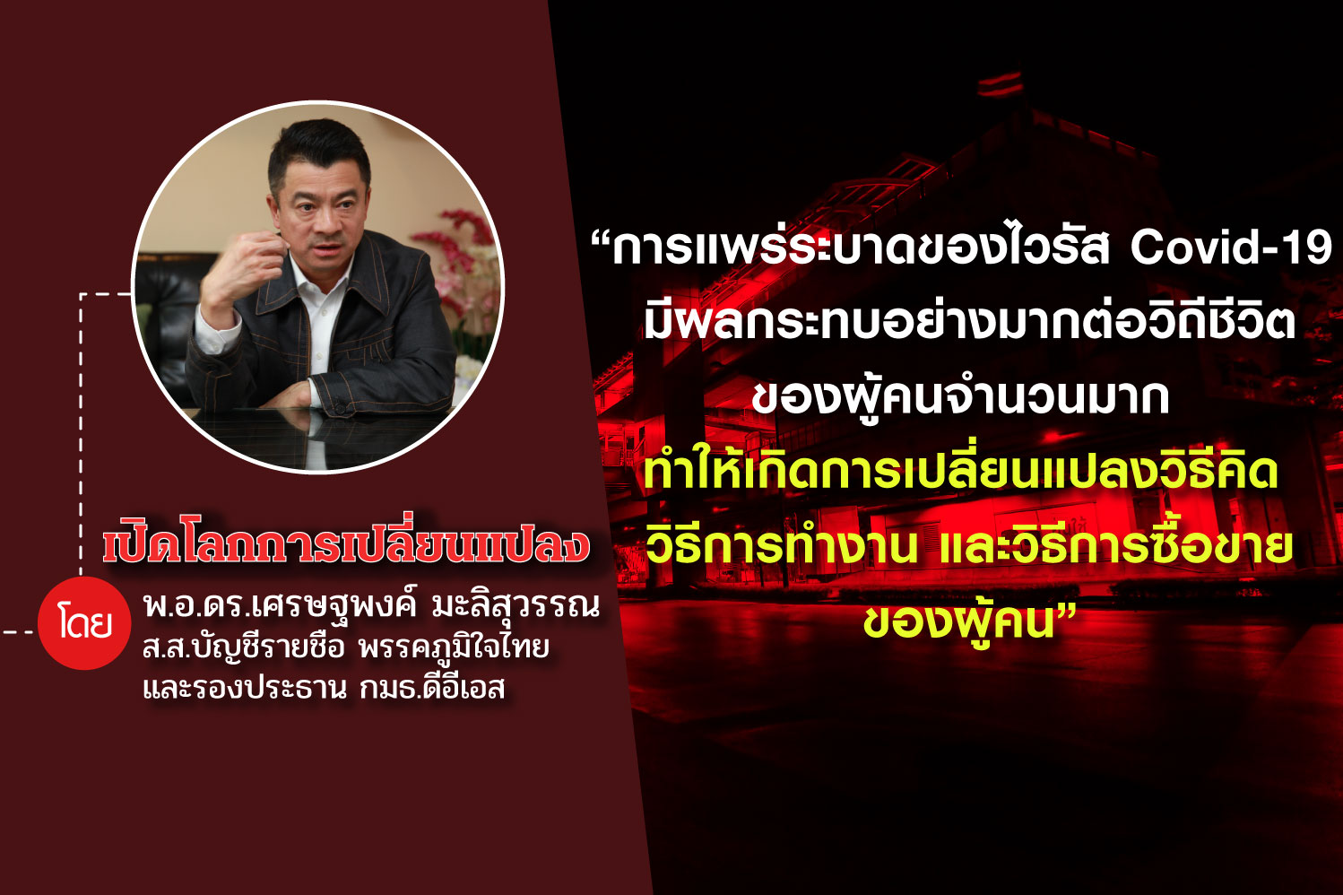 “เศรษฐพงค์” เปิดโลกการเปลี่ยนแปลงช่วงวิกฤตไวรัส Covid-19