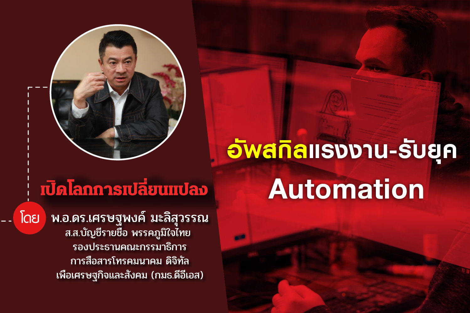 โดย...พ.อ.ดร.เศรษฐพงค์ มะลิสุวรรณ ส.ส.บัญชีรายชื่อ พรรคภูมิใจไทย และรองประธานคณะกรรมาธิการการสื่อสาร โทรคมนาคม ดิจิทัลเพื่อเศรษฐกิจและสังคม (กมธ.ดีอีเอส) *****************