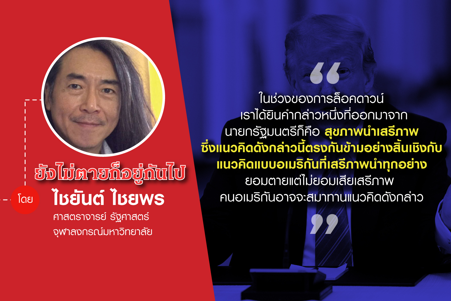 อย่างในกรณีของสังคมอเมริกัน ที่ถ้าเราไม่เข้าใจถึงปรัชญาในเรื่องนี้ เราก็อาจจะไม่เข้าใจว่าทำไมคนเหล่านี้ถึงมีพฤติกรรมการแสดงออกแบบนี้ แต่ในมุมกลับกัน การนำปรัชญาการเมืองที่ดูฟุ้งซ่านในลักษณะนั้นมาใช้กับที่ส่วนอื่นๆของโลก ไม่ต้องที่ไหนไกล อย่างในประเทศไทย ดูเหมือนว่าจะเป็นไปไม่ได้อย่างยิ่ง และเชื่อว่าประชาชนชาวไทยก็คงไม่เอาด้วย เพราะในช่วงของการล็อคดาวน์ เราได้ยินคำกล่าวหนึ่งที่ออกมาจากนายกรัฐมนตรีก็คือ สุขภาพนำเสรีภาพ ซึ่งแนวคิดดังกล่าวนี้ตรงกันข้ามอย่างสิ้นเชิงกับ แนวคิดแบบอเมริกันที่เสรีภาพนำทุกอย่าง ยอมตายแต่ไม่ยอมเสียเสรีภาพ คนอเมริกันอาจจะสมาทานแนวคิดดังกล่าว แต่สำหรับที่อื่นๆทั่วโลกส่วนใหญ่อาจจะไม่เอาหลักการดังกล่าวแบบคนอเมริกันที่มีความคิดเช่นนั้น บางทีพวกเราอาจจะมองว่าคนอเมริกันน่าจะเสียสติ แต่ในขณะเดียวกันพวกคนอเมริกันก็อาจจะไม่เข้าใจคนอื่นๆทั่วโลกเหมือนกันว่า ทำไมพวกเราถึงไม่รักษาเสรีภาพไว้”