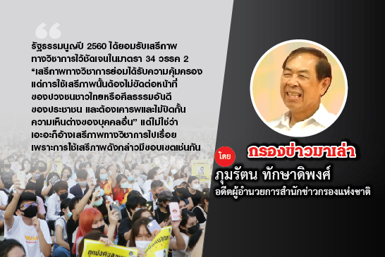 สองวันที่ผ่านมา สังคมพูดถึงและวิจารณ์กันมากต่อการชุมนุมที่มหาวิทยาลัยธรรมศาสตร์ ศูนย์รังสิต ซึ่งมีเนื้อหาบางส่วนทั้งภาพและคำบรรยายที่สุ่มเสี่ยงต่อการละเมิดรัฐธรรมนูญและกฎหมาย เสียดสี กระทบกระแทกต่อสถาบันกษัตริย์อย่างโจ่งแจ้ง ปลุกระดมให้ผู้ชุมนุมเกิดอารมณ์ร่วมในการเกลียดชัง เป็นการกระทำที่ “เหิมเกริม” และ “ขาดสติ” ของคนหนุ่มสาวกลุ่มหนึ่ง เสียงวิจารณ์ทั้งในสภาและนอกสภา ผ่านสื่อทุกสื่อต่อคนหนุ่มสาวผู้ชุมนุม เป็นไปอย่างรุนแรง กว้างขวาง ต่อเนื่อง