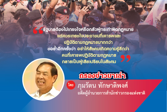 รัฐบาลต้องไม่เกรงใจหรือกลัวผู้กรทำผิดกฎหมาย แต่ควรเกรงใจประชาชนที่เคารพและปฏิบัติตามกฎหมายมากกว่า ขอย้ำอีกครั้งว่า อย่าให้สังคมเกิดความรู้สึกว่า คนที่เคารพปฏิบัติตามกฎหมายกลายเป็นผู้เสียเปรียบในสังคม