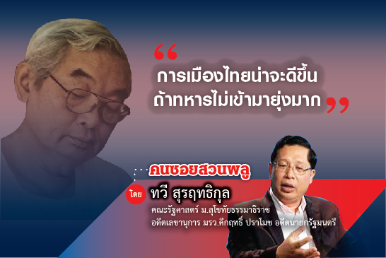 “การเมืองไทยน่าจะดีขึ้น ถ้าทหารไม่เข้ามายุ่งมาก” ก่อนที่ท่านจะเล่าเรื่องการเมืองในช่วงท้ายของสมัยปกครองของจอมพล ป. อันนำมาสู่ยุค “นายทุนขุนศึก” ในช่วงของจอมพลสฤษดิ์ ธนะรัชต์ ขึ้นมามีอำนาจสืบต่อ ซึ่งจะขอนำเสนอในสัปดาห์หน้าครับ