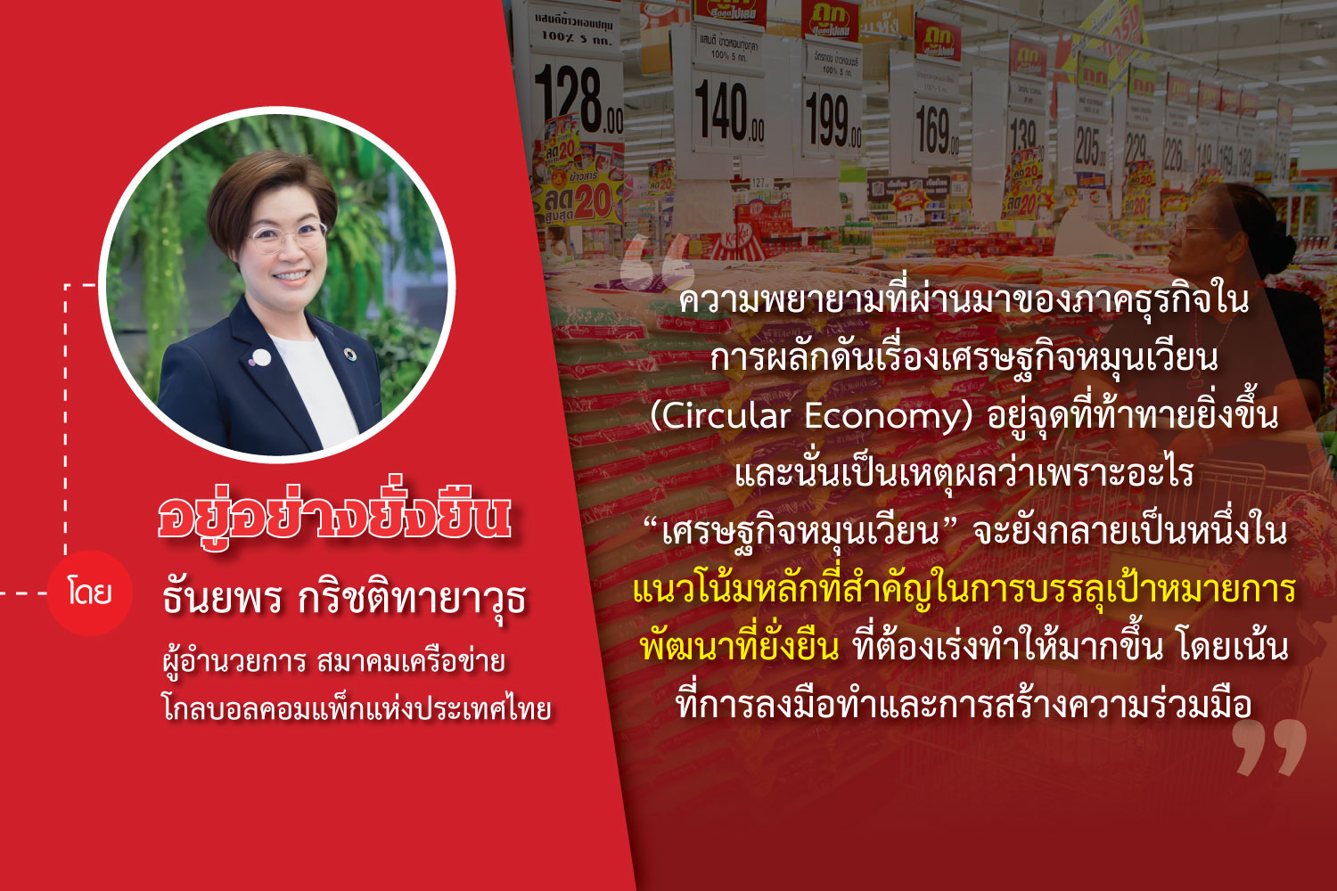 ความพยายามที่ผ่านมาของภาคธุรกิจในการผลักดันเรื่องเศรษฐกิจหมุนเวียน (Circular Economy) อยู่จุดที่ ท้าทายยิ่งขึ้น และนั่นเป็นเหตุผลว่าเพราะอะไร “เศรษฐกิจหมุนเวียน” จะยังกลายเป็นหนึ่งในแนวโน้มหลักที่สำคัญในการบรรลุเป้าหมายการพัฒนาที่ยั่งยืน ที่ต้องเร่งทำให้มากขึ้น โดยเน้นที่การลงมือทำและการสร้างความร่วมมือ