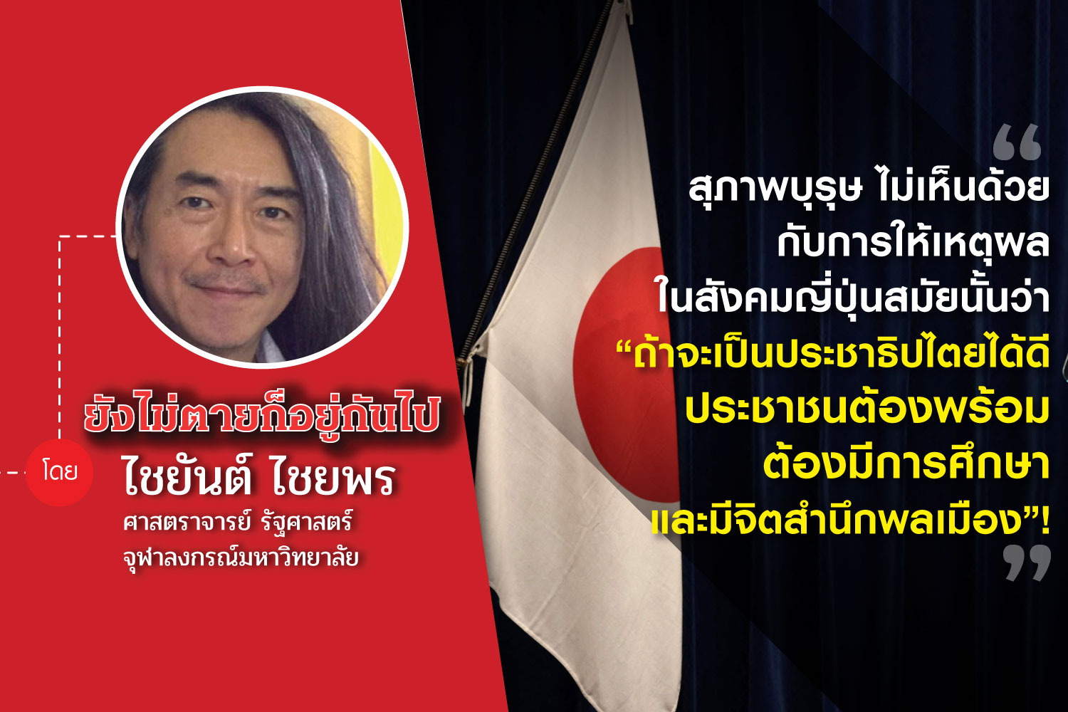 “สุภาพบุรุษ” ไม่เห็นด้วยกับการให้เหตุผลในสังคมญี่ปุ่นสมัยนั้นว่า “ถ้าจะเป็นประชาธิปไตยได้ดี ประชาชนต้องพร้อม ต้องมีการศึกษาและมีจิตสำนึกพลเมือง” !