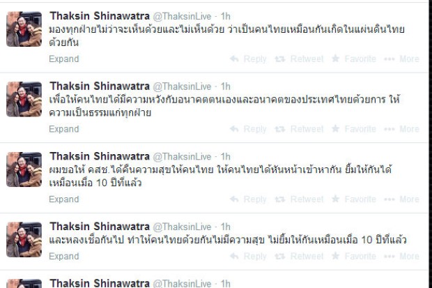 ทักษิณทวิตขอคสช.ให้ความเป็นธรรมแก่ทุกฝ่าย