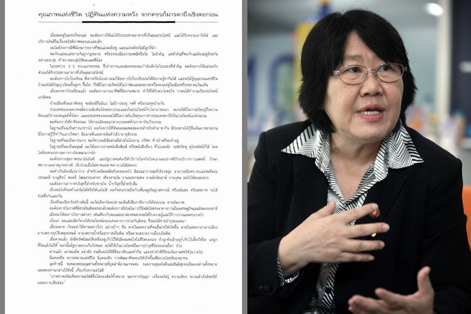 อาจารย์ป๋วยพูดแทนความปรารถนาของคนไทยทั้งปวง ที่ต้องการมีสุขภาพอนามัยที่ดี...ต้องการอากาศบริสุทธ์ิสำหรับหายใจ น้ำบริสุทธิ์สำหรับดื่ม ซึ่งเป็นเรื่องพื้นฐานที่สุดสำหรับชีวิตมนุษย์