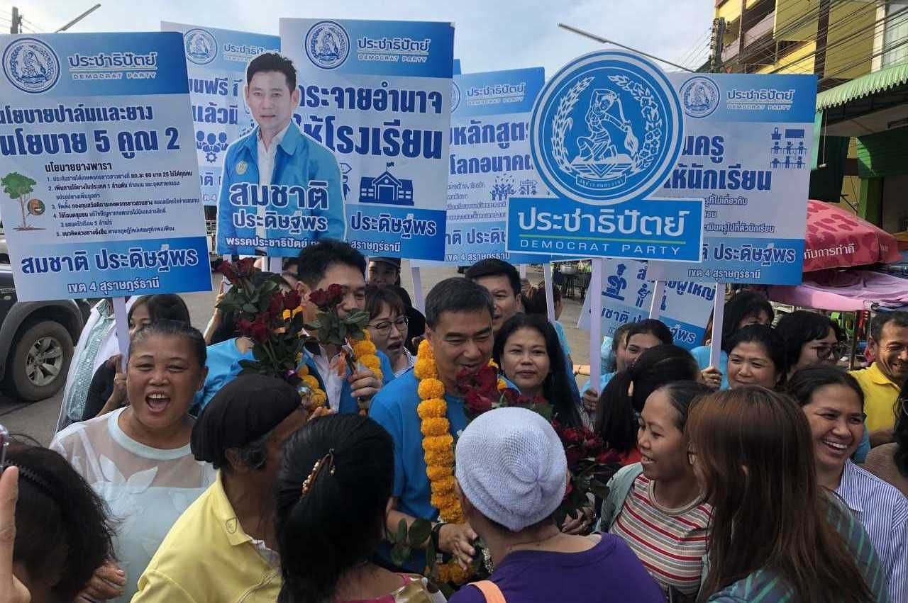 "อภิสิทธิ์" พาว่าที่ผู้สมัคร ส.ส. สุราษฎร์ฯ พรรคประชาธิปัตย์ลงพื้นที่ อ.พุนพิน มั่นใจชวนคนใต้หลุดพ้นวังวนการเมืองทำให้ไม่พัฒนา