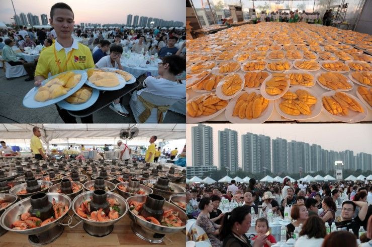 ยิ่งใหญ่! ประมวลภาพงานเลี้ยงนักท่องเที่ยวจีน-ข้าวเหนียวมะม่วงใหญ่สุดในโลก