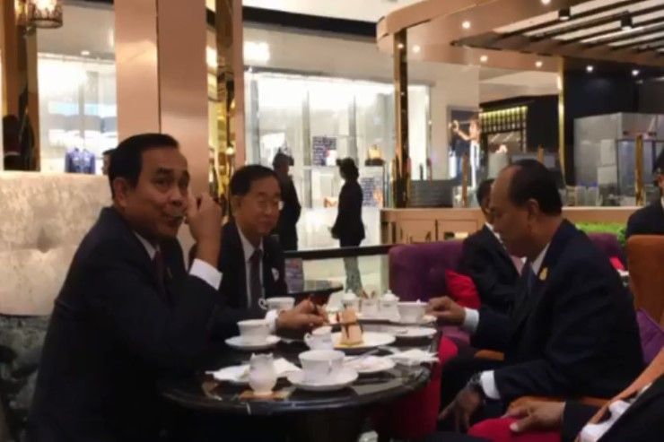 อิริยาบถสบายๆของ พล.อ.ประยุทธ์ และรัฐมนตรีนั่งดื่มกาแฟร้านในห้างดัง-นายกฯเผยไม่ได้นั่งร้านแบบนี้นานแล้ว