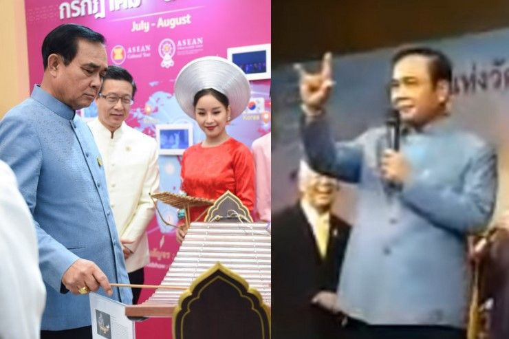 พล.อ.ประยุทธ์ ตีระนาดเพลงธรณีกรรแสง-ก่อนขึ้นเวทีครวญเพลงยิ่งรู้จักยิ่งรักเธอพร้อมทำท่าประจำในงานวัฒนธรรมอาเซียน