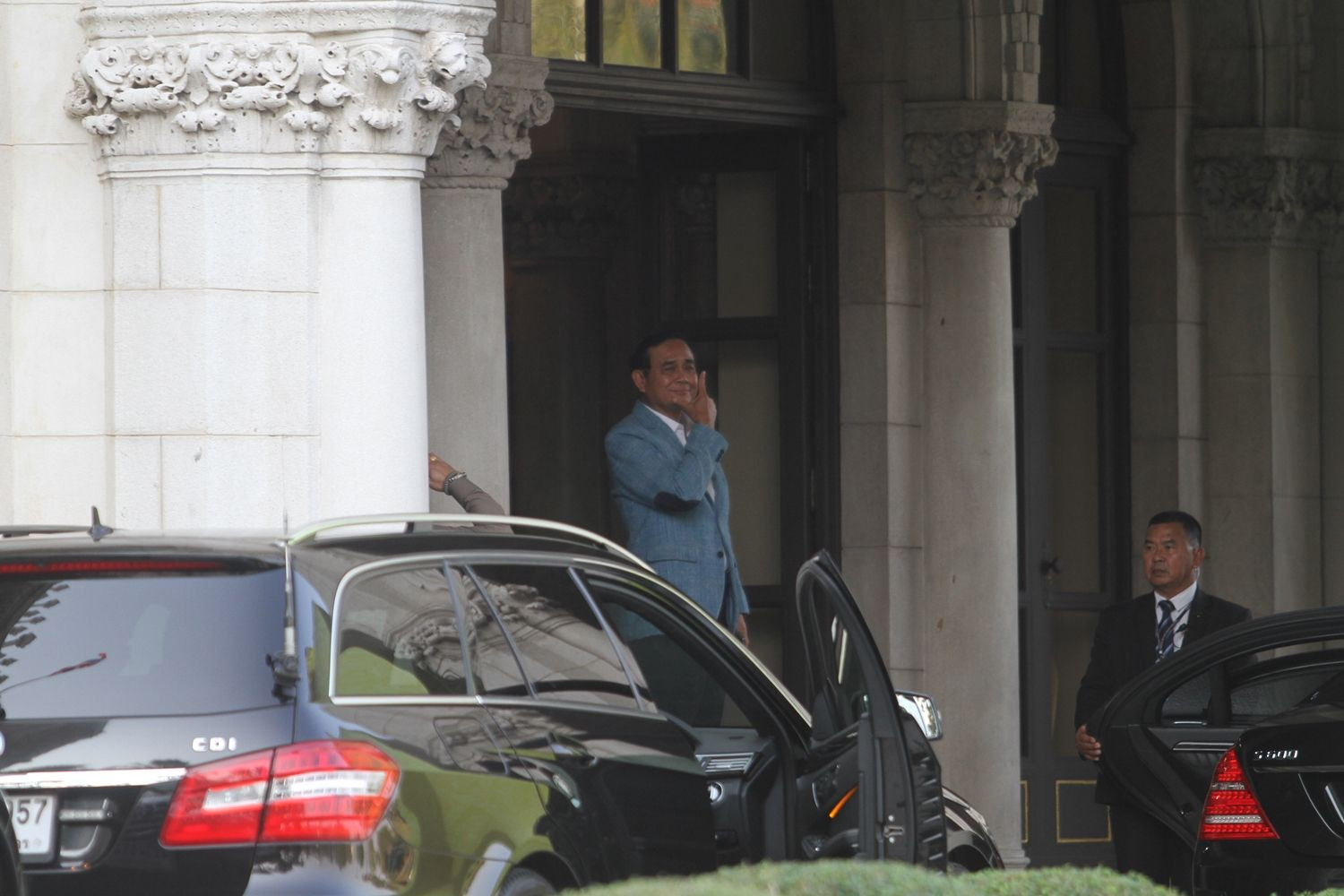 ประยุทธ์ทำท่าเก๊กหล่อก่อนออกจากทำเนียบรัฐบาล