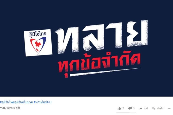 พรรคภูมิใจไทยเดินหน้าหาเสียง ปล่อยโฆษณานโยบายพรรคดึงใจคนรุ่นใหม่ พร้อมติดแฮ็ชแท็คห้ามก็อปGU