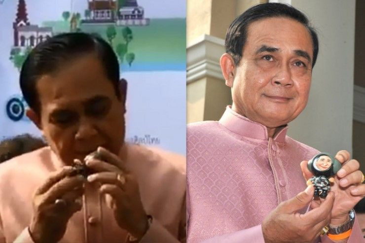 พล.อ.ประยุทธ์ หยอกล้อเล่นมุขกับตุ๊กตาหน้าเหมือน ถามจะไปดีเบตหรือเปล่า