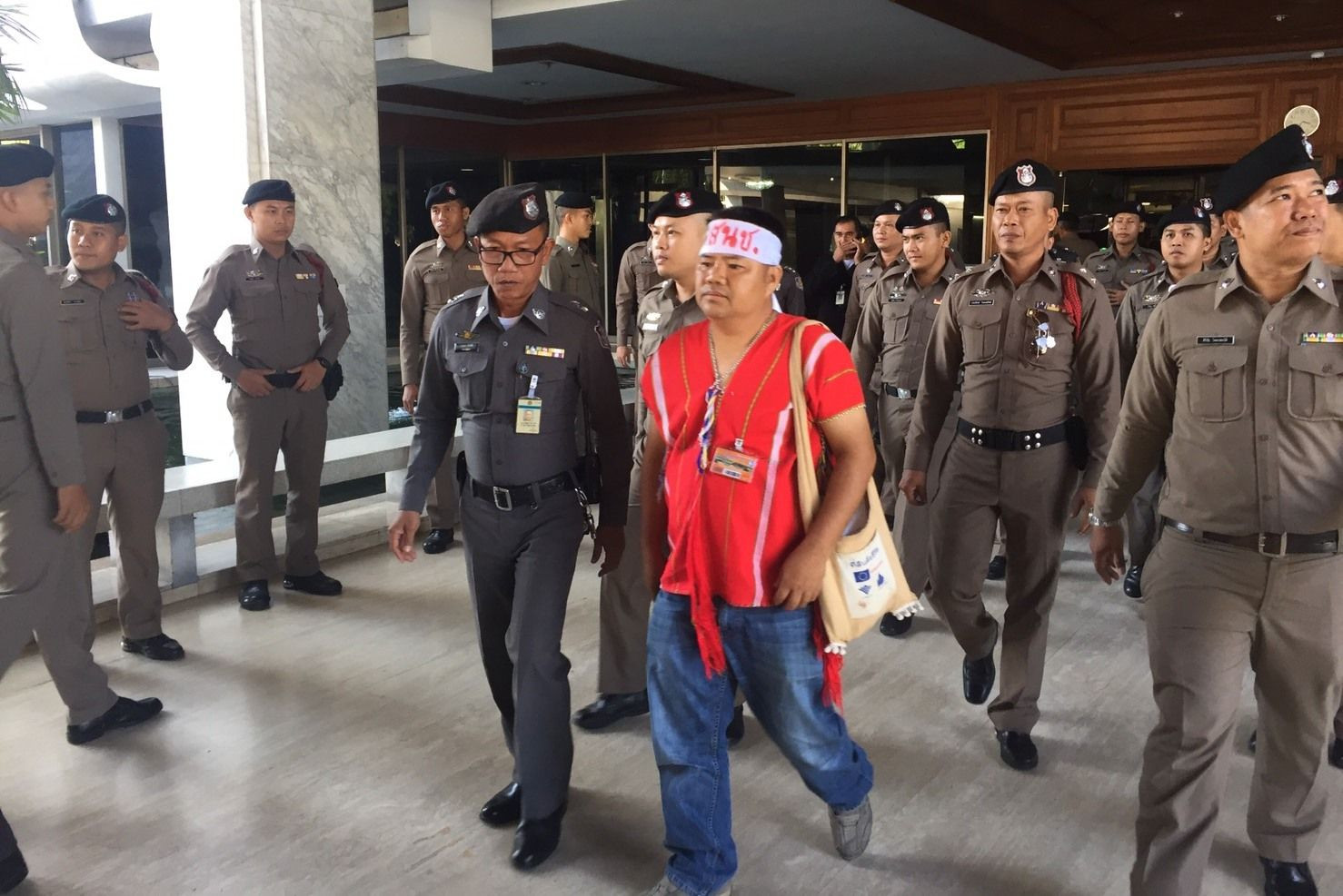 กลุ่มค้านร่างกฎหมายอุทยานบุกสภา ตะโกนจี้สนช.หยุดพิจารณา ตร.เข้าคุมตัวออก