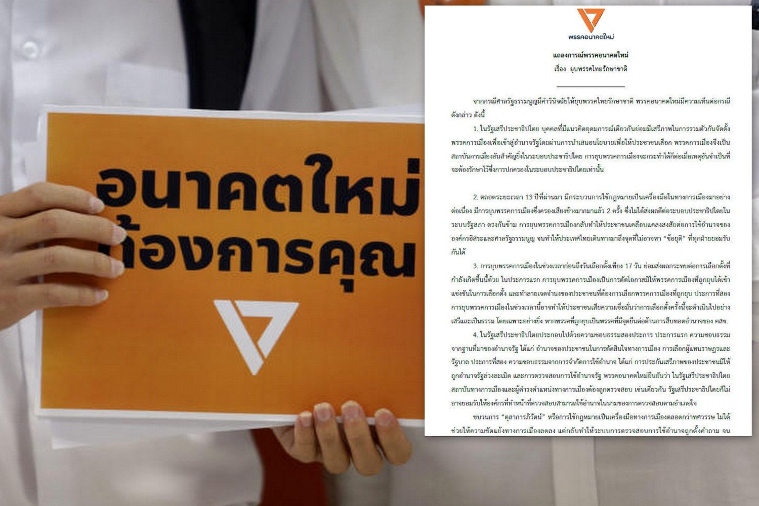 พรรคอนาคตใหม่ออกแถลงการณ์ปมยุบพรรคไทยรักษาชาติ ปลุกคนร่วมใช้สิทธิเลือกตั้งต่อต้านการสืบทอดอำนาจเผด็จการ
