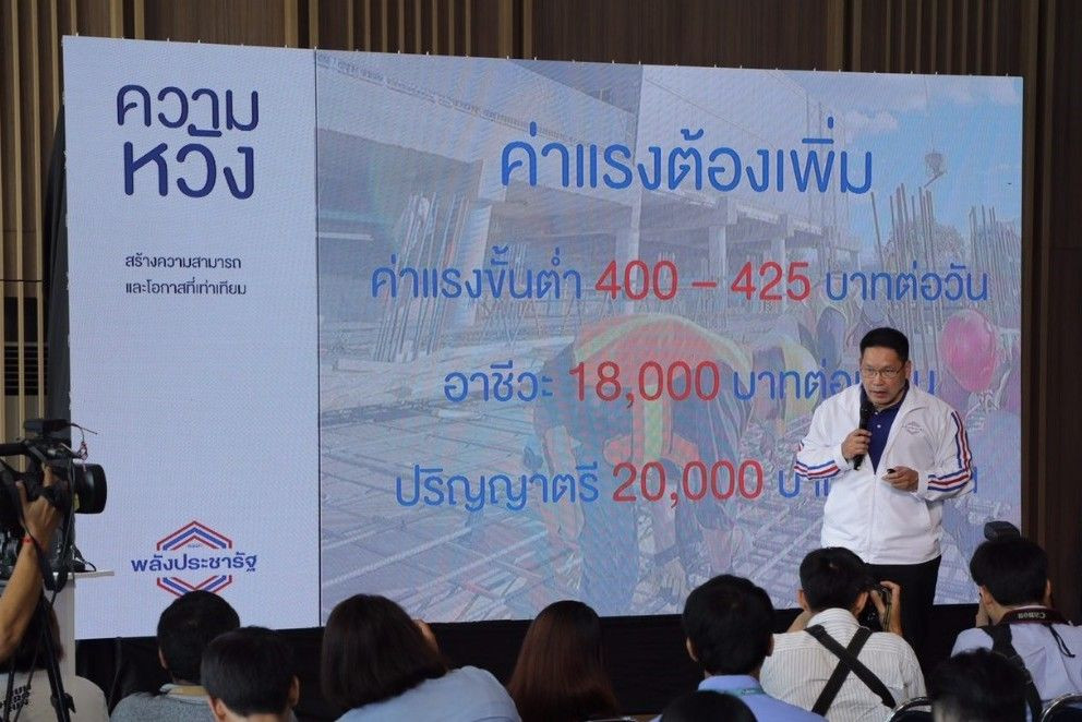 พลังประชารัฐเปิดนโยบายโค้งสุดท้าย ดันค่าแรงขั้นต่ำ400บาท-จบป.ตรีเงินเดือน2หมื่น