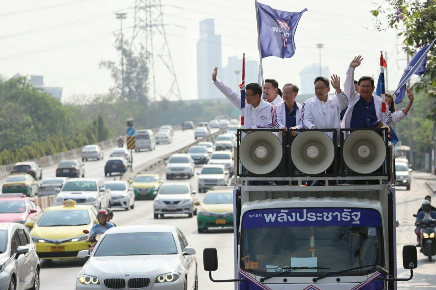 อุตตม หัวหน้าพรรคพลังประชารัฐและแกนนำขึ้นรถแห่รอบกทม.ขอคะแนนในวันสุดท้ายของการหาเสียงก่อนเลือกตั้ง24มี.ค.62