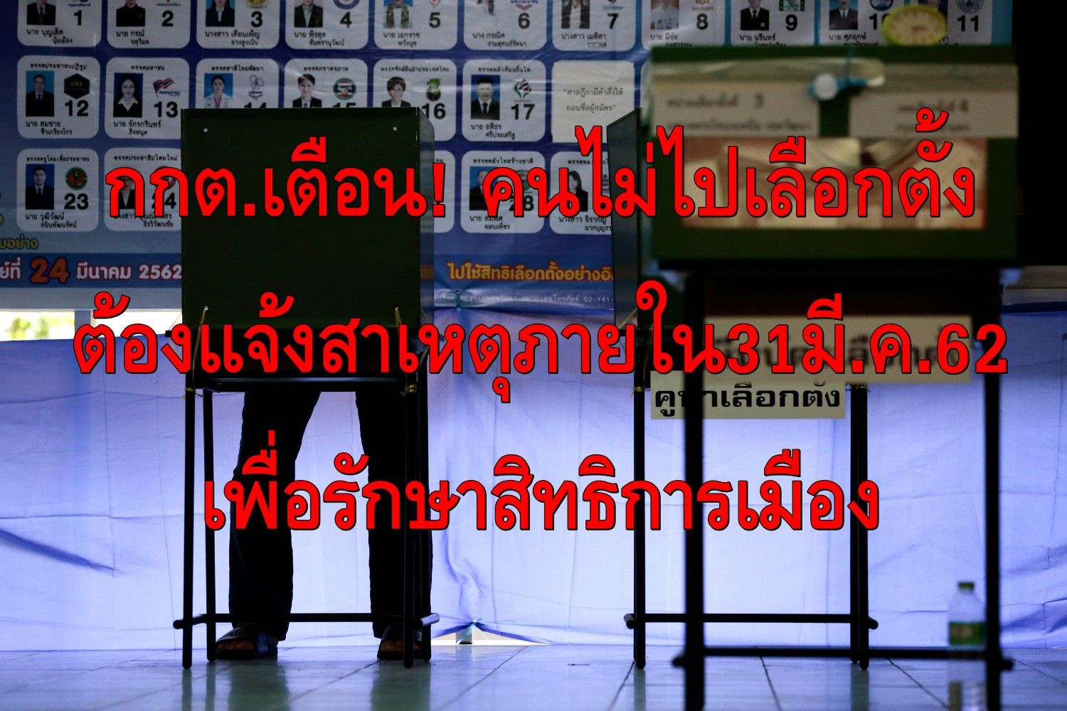 กกต.เตือนคนไม่ไปเลือกตั้งต้องแจ้งสาเหตุภายใน31มี.ค.นี้เพื่อไม่ให้เสียสิทธิ