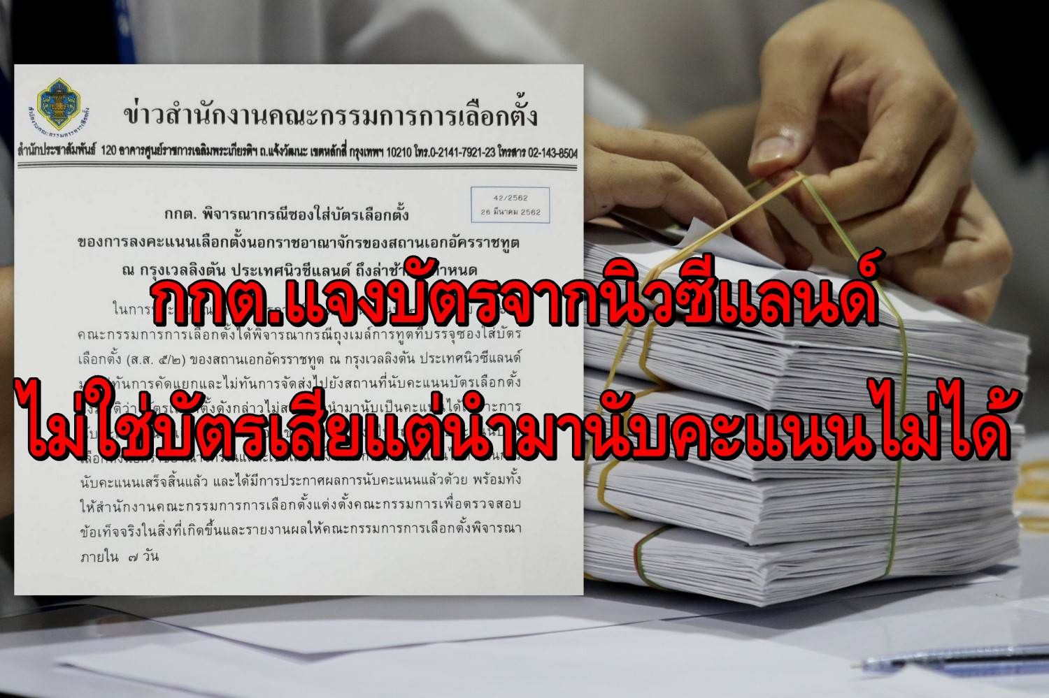 กกต.แจงบัตรเลือกตั้งจากนิวซีแลนด์ไม่สามารถนำมานับคะแนนได้ เพราะมาถึงสถานที่นับล่าช้าและไม่มีระเบียบรองรับ ยืนยันไม่ใช่บัตรเสีย
