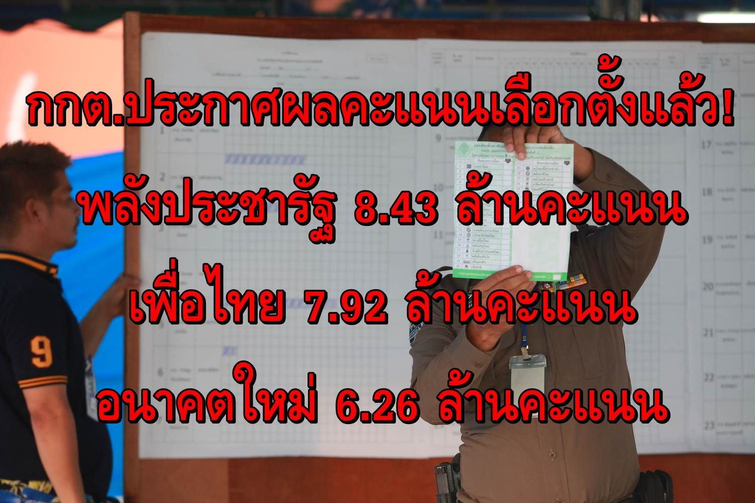 "กกต."แถลงผลคะแนนเลือกตั้ง พปชร.เบอร์หนึ่งได้8.4ล้าน เพื่อไทยมาที่สอง 7.9ล้าน