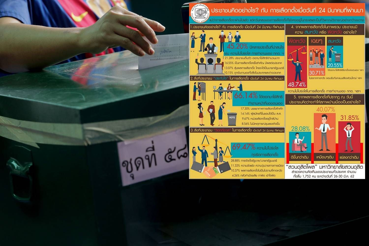 ดุสิตโพลชี้คน48.74% ผิดหวังผลการเลือกตั้ง กังวลความไม่โปร่งใส