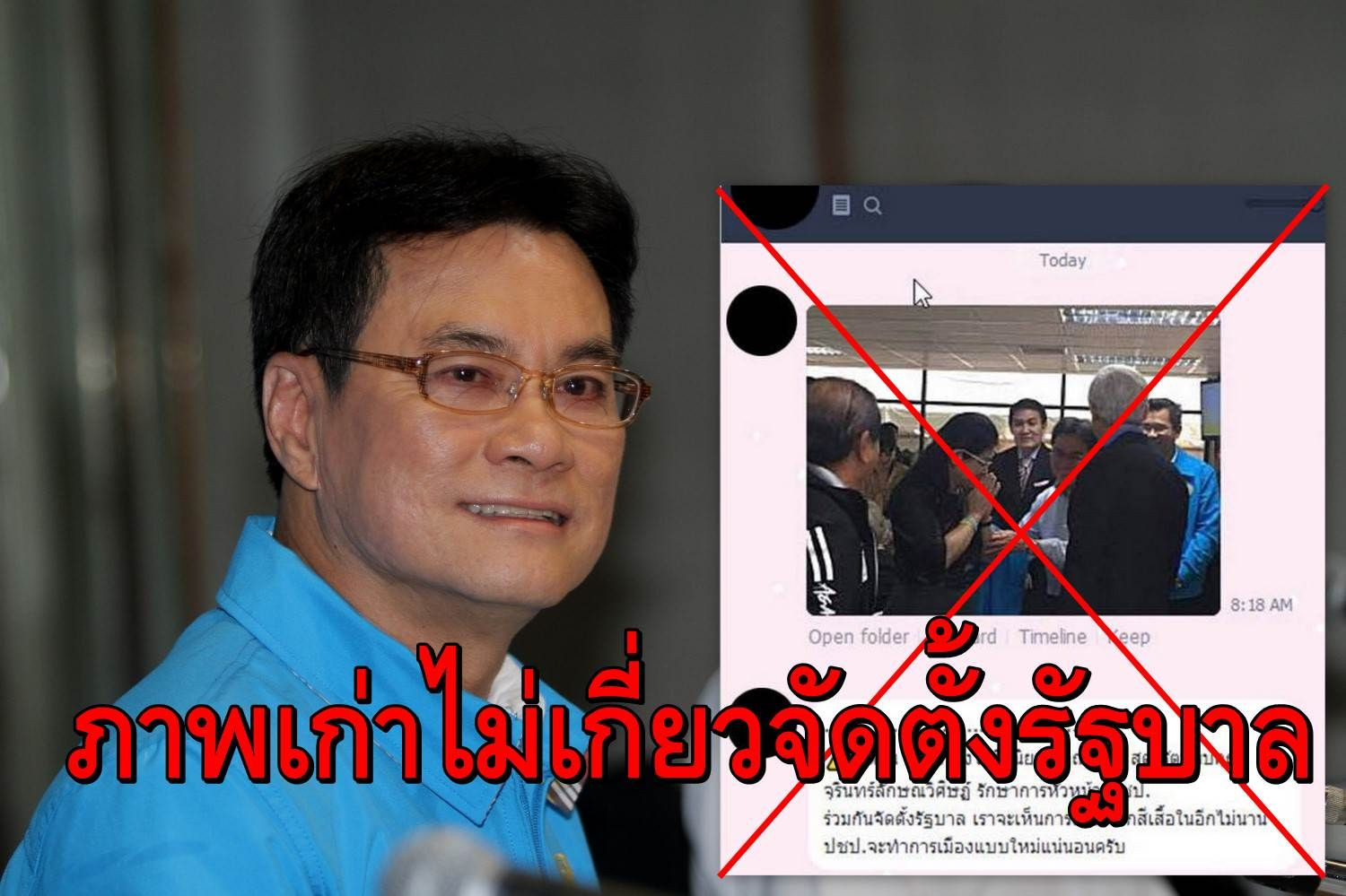 ทั้งนี้เพื่อจะสื่อว่าผมได้พบกับพรรคเพื่อไทยเพื่อการจัดตั้งรัฐบาล โดยมีภาพประกอบส่งมาด้วย เพื่อเพิ่มความน่าเชื่อถือ