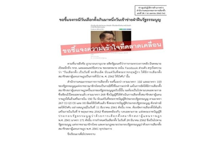 เมื่อวันที่ 17 เม.ย. สำนักประชาสัมพันธ์ กกต. โพสต์ข้อความ ระบุว่า ขอชี้แจงกรณีวันเลือกตั้งเกินมาหนึ่งวันเข้าข่ายฝ่าฝืนรัฐธรรมนูญ