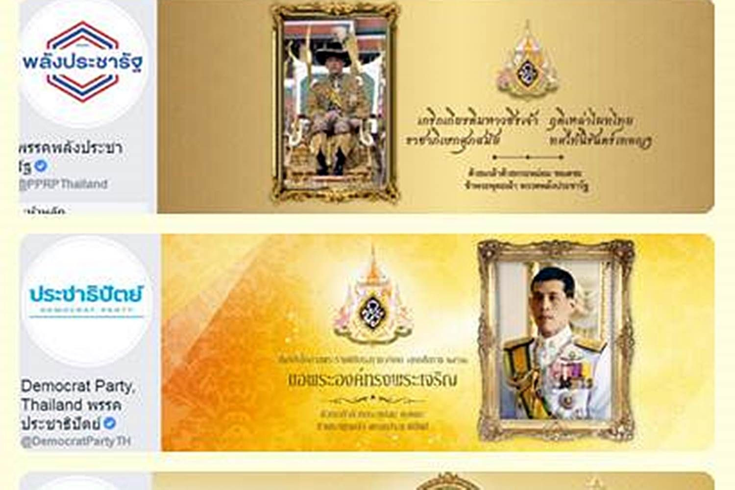 ปลาบปลื้มใจ เพจเฟซบุ๊กพรรคการเมืองเกือบทุกพรรคเปลียนรูปภาพหน้าปกพร้อมกลอนถวายพระพรเนื่องในพระราชพิธีบรมราชาภิเษก