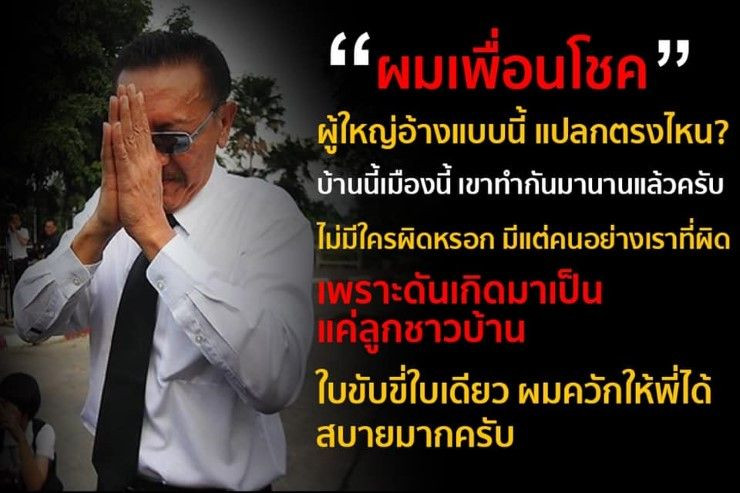 ทั้งนี้ภาพดังกล่าวเป็นรูป นายชูวิทย์ กำลังยกมือไหว้ พร้อมข้อความ "ผมเพื่อนโชค" ผู้ใหญ่อ้างแบบนี้แปลกตรงไหน? บ้านนี้เมืองนี้เขาทำกันมานานแล้วครับ ไม่มีใครผิดหรอก มีแค่ตนอย่างเราที่ผิด เพราะดันเกิดมาเป็นแค่ลูกชาวบ้าน ใบขับขี่ใบเดียว ผมควักให้พี่ได้สบายมากครับ