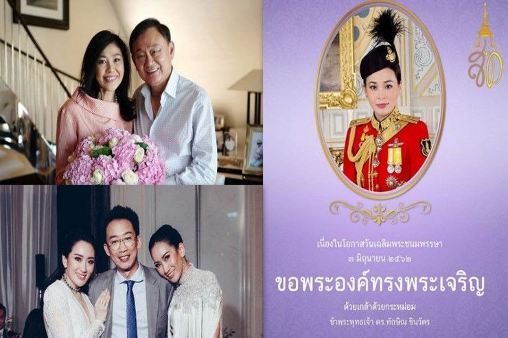 เมื่อวันที่ 3 มิ.ย. นายทักษิณ และน.ส.ยิ่งลักษณ์ ชินวัตร สองอดีตนายกรัฐนรตรี พร้อมครอบครัว อาทิ นายพานทองแท้ น.ส.พินทองทา และน.ส.แพทองธาร โพสต์ข้อความถวายพระพรสมเด็จพระนางเจ้าฯ พระบรมราชินี เนื่องในโอกาสวันเฉลิมพระชนมพรรษา 3 มิ.ย. 2562