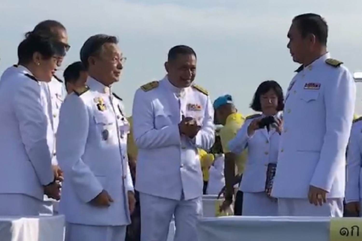 3 มิ.ย.62 ที่ท้องสนามหลวง ภายหลังเสร็จสิ้นพิธีทำบุญตักบาตรถวายพระราชกุศล เนื่องในโอกาสวันเฉลิมพระชนมพรรษาสมเด็จพระนางเจ้าฯ พระบรมราชินี ประจำปี 2562 พล.อ.ประยุทธ์ จันทร์โอชา นายกรัฐมนตรีและหัวหน้าคณะรักษาความสงบแห่งชาติ (คสช.) มีโอกาสทักทายพร้อมสวัสดี นายชวน หลีกภัย ประธานสภาผู้แทนราษฎร ซึ่งนายชวนได้รับไหว้ด้วยสีหน้ายิ้มๆ และพูดคุยเล็กน้อย โดยมีสมาชิกพรรคประชาธิปัตย์ร่วมวงสนทนาด้วย จากนั้น นายพรเพชร วิชิตชลชัย ประธานวุฒิสภา ได้เข้ามาพูดคุย ก่อนที่ทั้งหมดจะแยกย้ายกันขึ้นรถไปปฏิบัติภารกิจต่อ