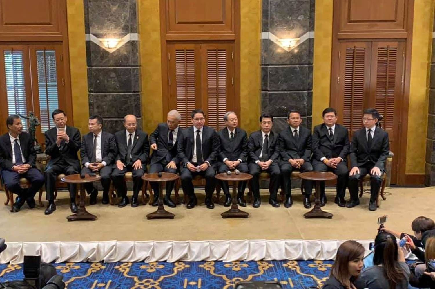 4 มิ.ย.62- ที่ห้องรัตนโกสินทร์ โรงแรมสุโกศล ตัวแทนพรรคการเมืองประกอบด้วย 1.นายอุตตม สาวนายน หัวหน้าพรรคพลังประชารัฐ(พปชร.) 2. นายสนธิรัตน์ สนธิจิรวงศ์ เลขาธิการพรรคพปชร. 3.นายทวีศักดิ์ ณ ตะกั่วทุ่ง เลขาธิการพรรครวมพลังประชาชาติไทย 4.นายสุวัจน์ ลิปตพัลลภ ประธานที่ปรึกษาพรรคชาติพัฒนา 5.นายชัชวาลย์ คงอุดม หัวหน้าพรรคพลังท้องถิ่นไทย 6. นายดำรงค์ พิเดช หัวหน้าพรรครักษ์ผืนป่าประเทศไทย 7.นายไพบูลย์ นิติตะวัน หัวหน้าพรรคประชาชนปฏิรูป ร่วมแถลงข่าว