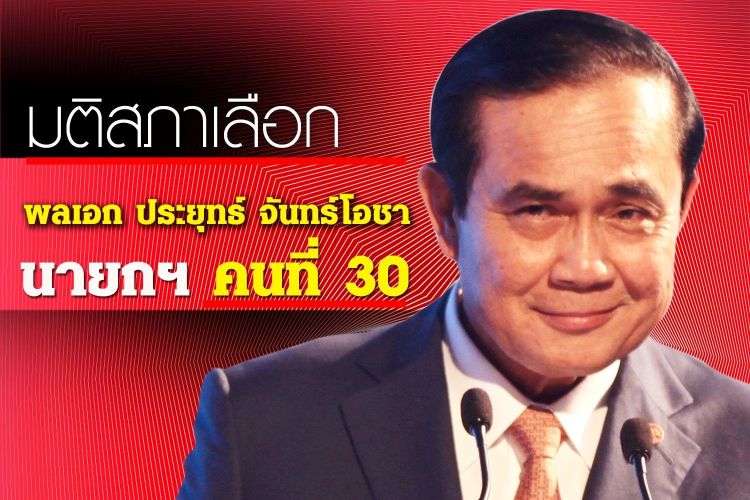 ที่ประชุมรัฐสภาลงมติเห็นชอบ "พล.อ.ประยุทธ์ จันทร์โอชา" ด้วยคะแนน เสียง ดำรงตำแหน่งนายกรัฐมนตรีคนที่ 30