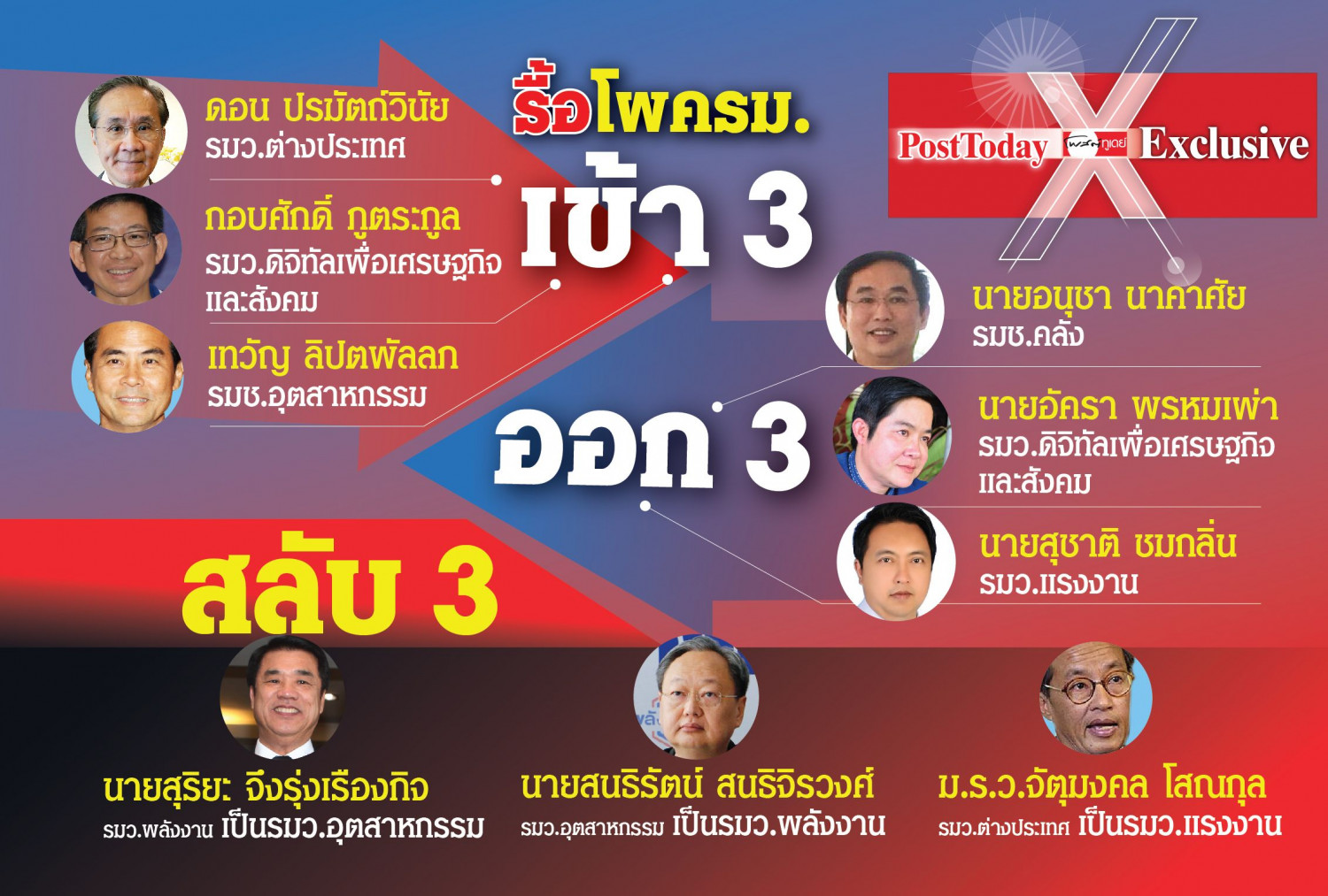 โผครม.วุ่นไม่จบกลุ่มสามมิตรพร้อมแตกหักหลังกระแส"อนุชา"หลุดรมช.คลัง"สุริยะ"โดนโยกพ้นพลังงานไปคุมอุตสาหกรรม