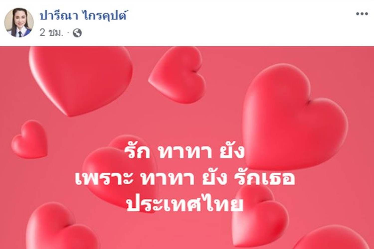 "ปารีณา ไกรคุปต์" ส.ส.พลังประชารัฐ ร่วมด้วยช่วยโพสต์ รัก "ทาทา ยัง"
