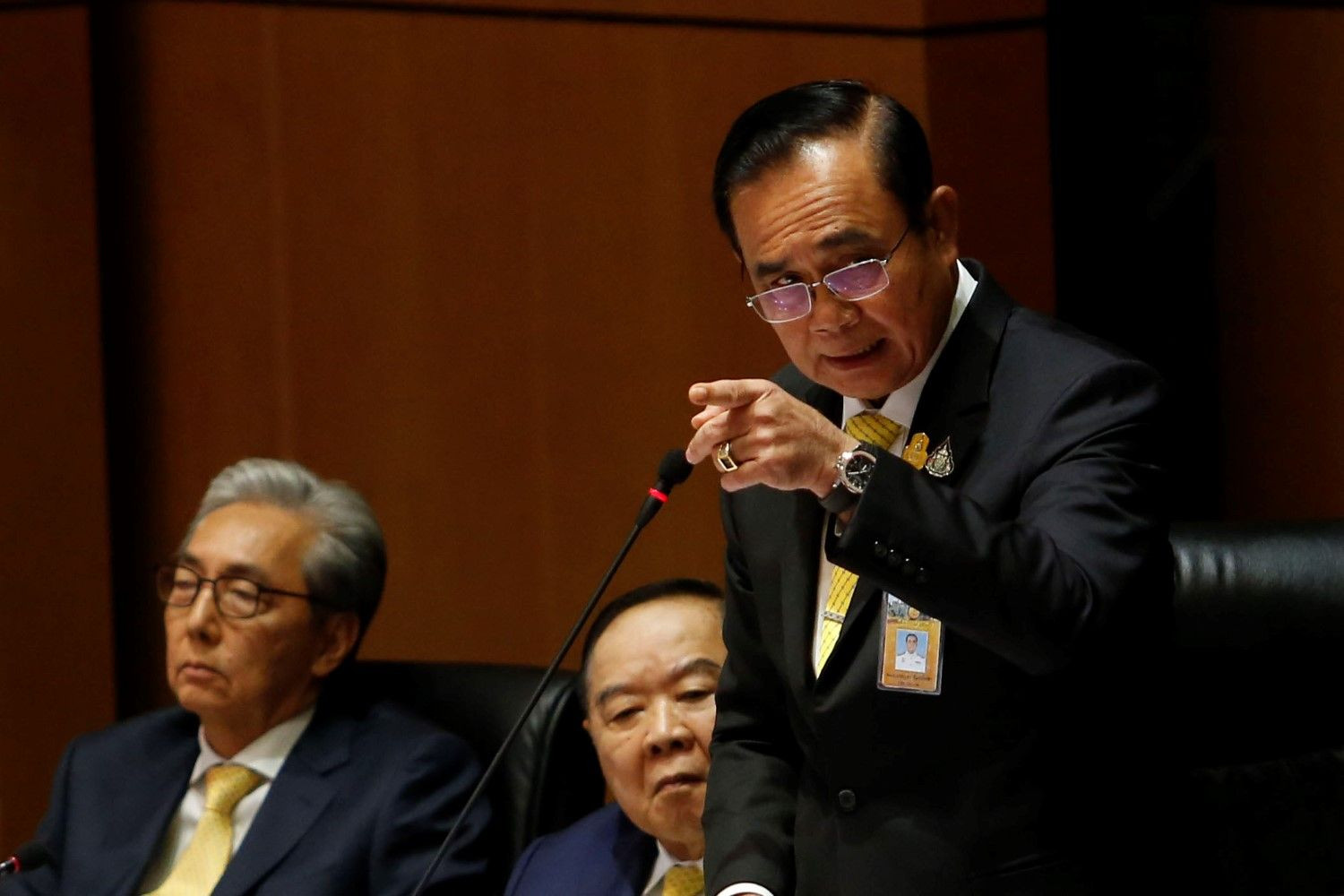 ผู้สื่อข่าวรางานว่าระหว่างที่พล.อ.ประยุทธ์ ชี้แจงนั้น นายศรัณย์วุฒิ ลุกประท้วงเพราะถูกพาดพิงฐานะผู้อภิปราย ซึ่งนายชวน หลีกภัย ประธานรัฐสภา ฐานะประธานในที่ประชุมกล่าวตัดบทให้ประท้วงในหลักการ จากนั้นให้ พล.อ.ประยุทธ์ ชี้แจงต่อไป และมีตอนหนึ่งที่สร้างเสียงหัวเราะให้กับที่ประชุม เมื่อ พล.อ.ประยุทธ์ พูดขึ้นว่า "ผมขอบคุณนายกรัฐมนตรี ด้วยครับ ขอบคุณท่านประธาน" จากนั้นได้ลุกออกจากห้องประชุม พร้อมกับใบหน้าอมยิ้ม