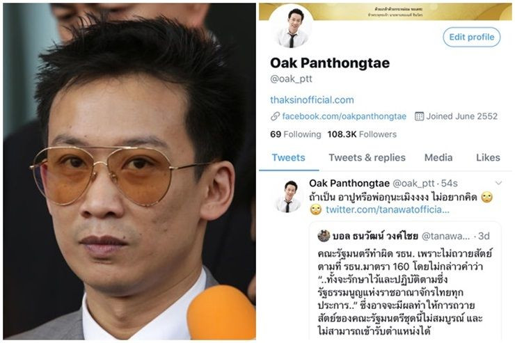 พานทองแท้ ทวิต เหน็บ ปม "บิ๊กตู่" ถวายสัตย์ บอก "ถ้าเป็น อาปูหรือพ่อกุนะเมิงงงง ไม่อยากคิด"
