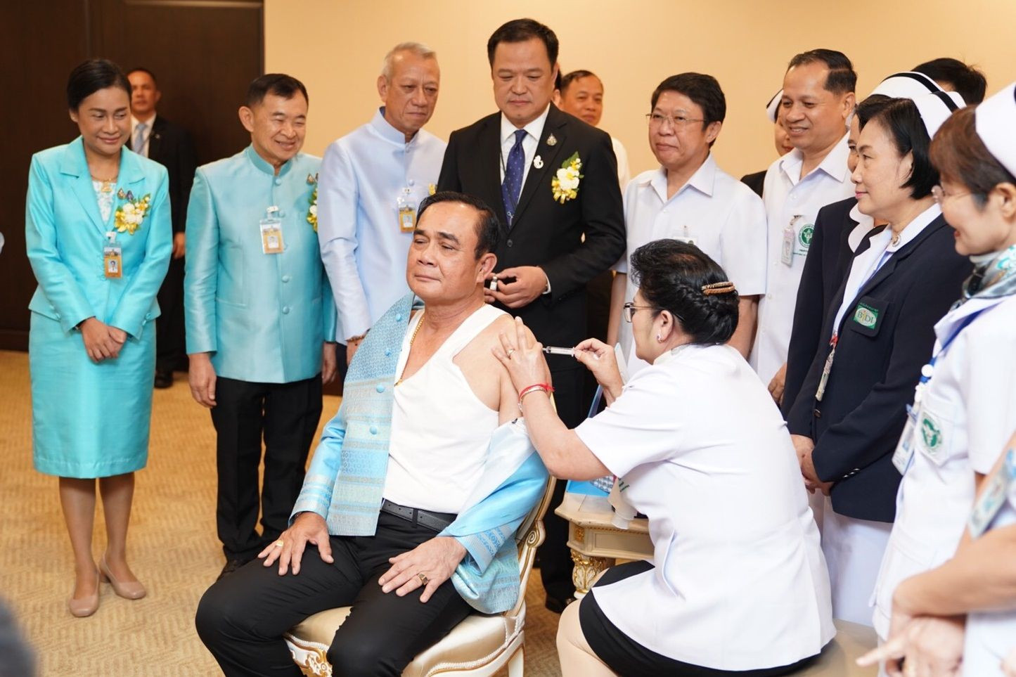 เมื่อวันที่ 6 ส.ค.2562 ที่ทำเนียบรัฐบาล ก่อนการประชุมคณะรัฐมนตรี นายอนุทิน ชาญวีรกูล รองนายกรัฐมนตรีและรมว.สาธารณสุข นำคณะเข้าพบ พล.อ.ประยุทธ์ จันทร์โอชา นายกรัฐมนตรี เพื่อรณรงค์ฉีดวัคซีนป้องกันโรคไข้หวัดใหญ่แก่บุคลากรกลุ่มเสี่ยง โดย พล.อ.ประยุทธ์ รับการฉีดวัคซีนป้องกันปอดอักเสบ ซึ่งระหว่างพยาบาลทาแอลกอฮล์ พล.อ.ประยุทธ์ ได้พูดแซวว่า "มีวัคซีนแก้โรคการเมืองมั้ย" ทั้งคณะจึงพากันหัวเราะ จากนั้นนายกพูดว่า "เบื่อเหลือเกิน"