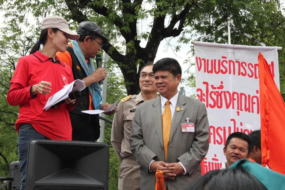 เมื่อรับหนังสือแล้วนายเทวัญได้ขึ้นรถกระจายเสียงของกลุ่มผู้ชุมนุมและกล่าวกับกลุ่มผู้ชุมนุมว่า รัฐบาลพล.อ.ประยุทธ์ จันทร์โอชา นายกรัฐมนตรี และรัฐมนตรีว่าการกระทรวงกลาโหม ไม่ได้นิ่งนอนใจในการแก้ปัญหาให้กับพี่น้อง ผู้มีรายได้น้อย และตนเอง ก็มีความเห็นอกเห็นใจกับพี่น้องทุกคน จึงได้ลาที่ประชุมคณะรัฐมนตรีรีบออกมารับหนังสือจากทุกคน โดยได้บอกกับนายกรัฐมนตรีว่าขอออกมารับหนังสือ จากกลุ่มพี่น้องที่มากันเป็นจำนวนมาก ซึ่งนายกรัฐมนตรีก็ได้กำชับว่าเมื่อรับหนังสือเรียบร้อยแล้วให้นำมาชี้แจงต่อนายกฯในทันที ซึ่งตนก็รับปากนายกฯ ไปแล้ว