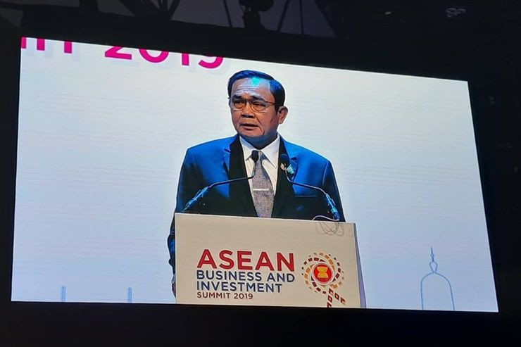 "ไทยได้ร่วมกับเอกชนในการพัฒนาประเทศด้านการค้าการลงทุน ทั้งด้านความมั่นคงทางพลังงานและทรัพยากรมนุษย์ เพื่อการพัฒนาที่ยั่งยืน เน้นการลงทุนรูปแบบรัฐเอกชนร่วมลงทุน (PPP) ในเรื่องการสร้างโครงสร้างพื้นฐาน โดยเฉพาะอีอีซี ด้านการขนส่งโลจิสติกส์ ทั้งสนามบิน ท่าเรือ รองรับการขนส่งกับอาเซียนเป็นหลัก รวมทั้งภาคการเกษตรที่เร่งผลักดันเพื่อขับเคลื่อนเศรษฐกิจ ในการกระจายสินค้า อย่างไรก็ตาม รัฐบาลยังสนับสนุนธุรกิจเกิดใหม่ เอสเอ็มอีต่าง ๆ นวัตกรรมใหม่ ๆ ในศตวรรษที่ 21 ที่มีการเชื่อมโยงอย่างไร้รอยต่อ ไทยจึงเตรียมความพร้อมให้มีการเชื่อมโยงด้านดิจิทัลกับอาเซียนในทุกมิติ" พล.อ.ประยุทธ์ กล่าว