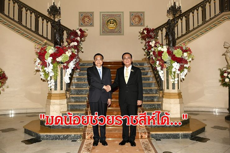 โดย พล.อ.ประยุทธ์ กล่าวว่า ในนามของรัฐบาลไทยและประชาชนชาวไทย ตนรู้สึกยินดีและเป็นเกียรติที่ได้ต้อนรับ นายกรัฐมนตรี หลี่ เค่อเฉียง ในการเยือนไทยอย่างเป็นทางการในฐานะแขกของรัฐบาล ซึ่งเป็นการเยือนที่เกิดขึ้นในปีที่มีความสำคัญ เป็นปีที่ไทยได้จัดพระราชพิธีบรมราชาภิเษก พุทธศักราช 2562 มีการจัดตั้งรัฐบาลใหม่ที่มาจากการเลือกตั้ง รวมถึงเป็นประธานอาเซียน ขณะที่จีนก็เฉลิมฉลองการครบรอบ 70 ปีแห่งการก่อตั้งสาธารณรัฐประชาชนจีนเมื่อวันที่ 1 ตุลาคม ที่ผ่านมา