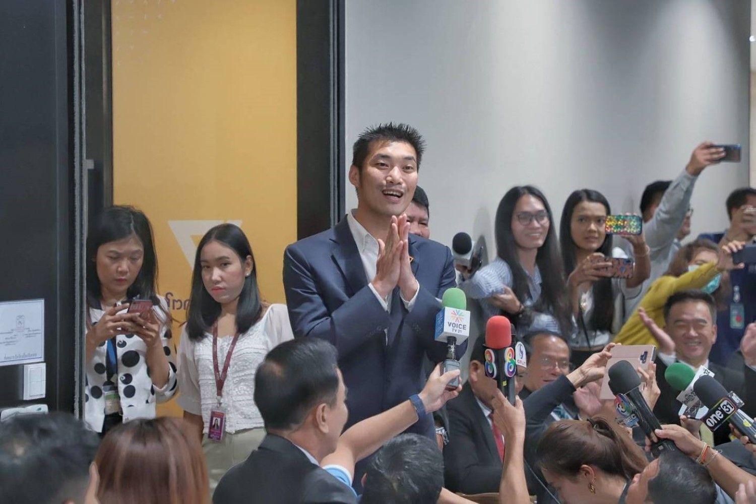ภายหลังจากนายธนาธรกล่าวจบ ส.ส.อนาคตใหม่ก็ได้ร่วมปรบมือ พร้อมลงชื่อให้กำลังใจนายธนาธรบนบานประตูห้องที่มีโลโก้ของพรรคอนาคตใหม่ด้วย