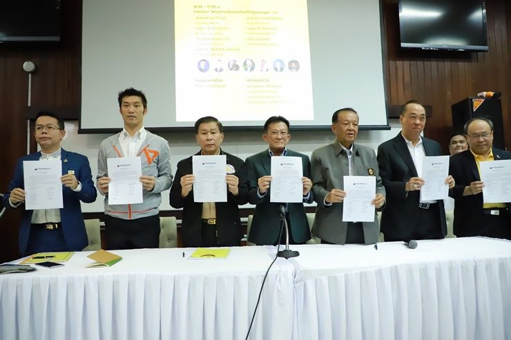 เมื่อวันที่ 14 ธ.ค. ที่ มหาวิทยาลัยธรรมศาสตร์ท่าพระจันทร์ 7 พรรคฝ่ายค้านจัดเสวนา “พรรคการเมืองร่วมใจแก้ไขรัฐธรรมนูญ” โดยมี นายสมพงษ์ อมรวิวัฒน์ หัวหน้าพรรคเพื่อไทย , นายธนาธร จึงรุ่งเรืองกิจ หัวหน้าพรรคอนาคตใหม่ , พล.ต.อ.เสรีพิศุทธ์ เตมียเวส หัวหน้าพรรคเสรีรวมไทย , นายวันมูหมัดนอร์ มะทา หัวหน้าพรรคประชาชาติ , พ.ต.อ.ทวี สอดส่อง เลขาธิการพรรคประชาชาติ , นายมนูญ สิวาภิรมย์รัตน์ หัวหน้าพรรคเศรษฐกิจใหม่ , นายสงคราม กิจเลิศไพโรจน์ หัวหน้าพรรคเพื่อชาติ , นายนิคม บุญวิเศษ หัวหน้าพรรคพลังปวงชนไทย ร่วมเสวนา