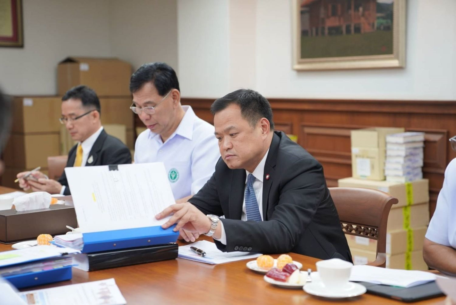 นายอนุทินระบุข้อความว่า ประชุมร่วม สปสช.กับ กระทรวงสาธารณสุข เรื่องงบประมาณ ที่ต้องเชื่อมโยงกัน 2 หน่วยงาน เพื่อให้การบริการประชาชน ผู้ป่วย มีประสิทธิภาพมากขึ้น