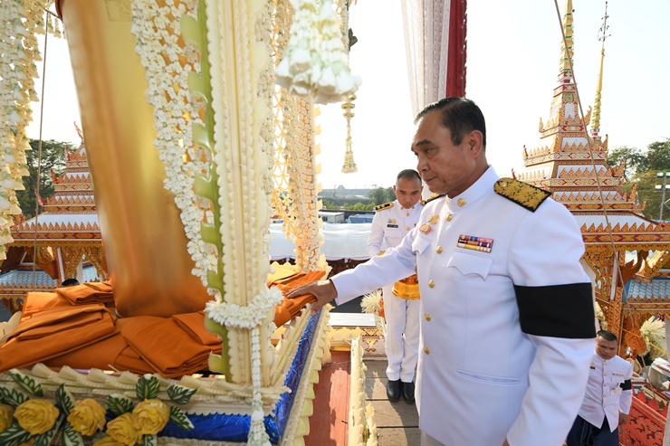 จากนั้นเวลา 16.00 น. พล.อ.ประยุทธ์ ประธานในพิธีทอดผ้าไตรบังสุกุลพระราชทาน 5 ไตร พระสงฆ์ 5 รูป พิจารณาผ้าบังสุกุล ประธานวางดอกไม้จันทน์บนจิตกาธาน ปี่ไฉน กลองชนะ ประโคม พระสงฆ์ และประชาชน ร่วมวางดอกไม้จันทน์ เป็นอันเสร็จพิธีหลวง ทั้งนี้ ในเวลา 18.00 น. ทำการประชุมเพลิง