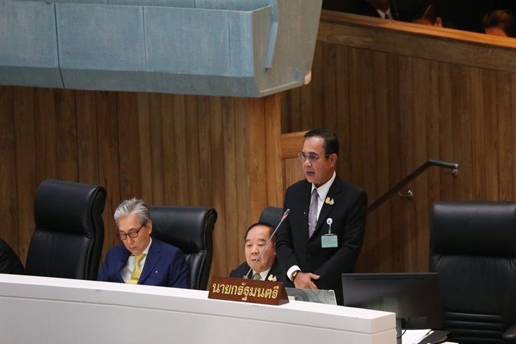 "บางเรื่องไม่ใช่เรื่องที่จะเอามาโจมตีกัน เพราะเสียหายต่อความเชื่อมั่นและความสัมพันธ์ระหว่างประเทศ รู้สึกว่าท่านชอบเหลือเกินในการที่จะทำให้ต่างประเทศลดความเชื่อมั่นผมและประเทศไทย แต่ไม่เป็นไรครับผมทนได้ ขอบคุณครับ" พล.อ.ประยุทธ์ กล่าว