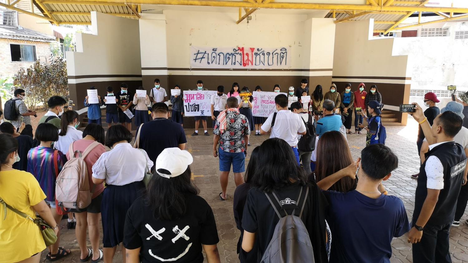 อย่างไรก็ตาม มีตัวแทนนักเรียนถือพานสัญลักษณ์รัฐธรรมนูญ เหนือพานรัฐธรรมนูญมีขบวนรถถัง เพื่อไว้อาลัยกับความล้มเหลวในการบริหารบ้านเมือง พร้อมเรียกร้องให้ พล.อ.ประยุทธ์ จันทร์โอชา นายกรัฐมนตรีและรมว.กลาโหม ลาออกจากตำแหน่ง และชูสัญลักษณ์ 3 นิ้ว ต่อต้านการรัฐประหาร