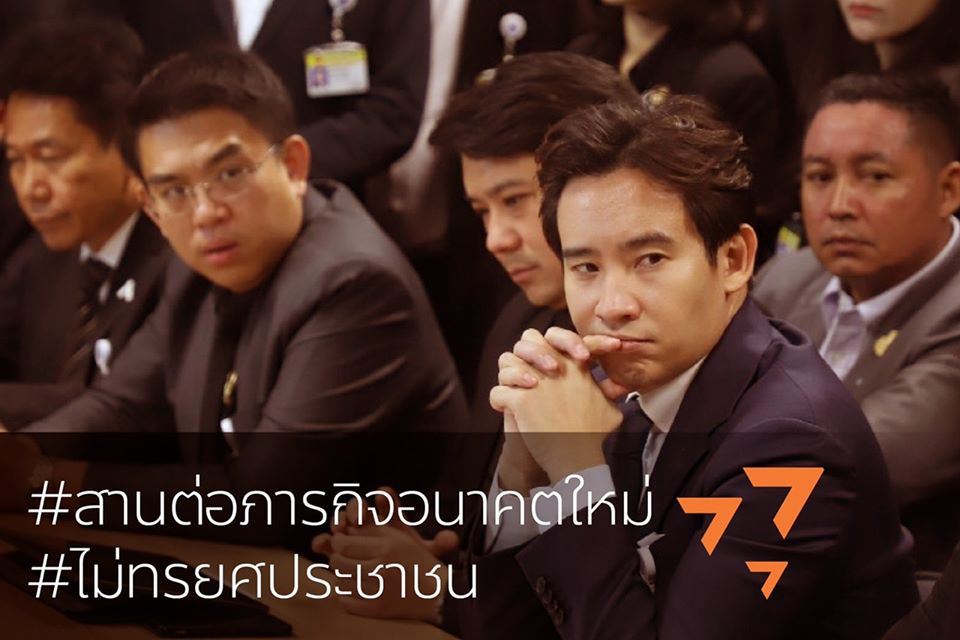 "ขอให้พี่น้องประชาชนร่วมติดตามและให้กำลังใจพรรคใหม่ของเราด้วยครับ ไม่ว่าจะอย่างไรเราจะต้อง #สานต่อภารกิจอนาคตใหม่ และ #ไม่ทรยศประชาชน"นายพิธา กล่าว